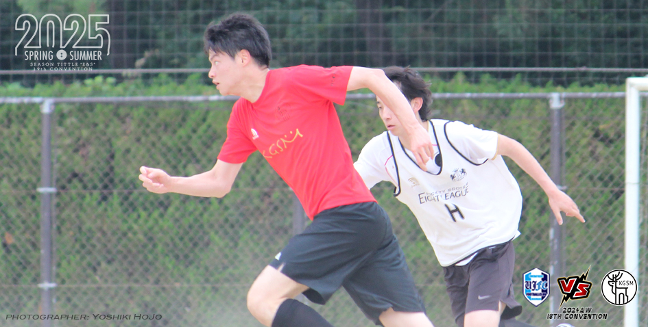 そんな両チームの試合は、互いにCBが大活躍。UJF.C-上野選手[30]もKGSM-小幡選手[6]も鉄壁の守備でチャンスを潰し、ゴール前で相手FWに仕事をさせなかった。試合を決めたのは前半13分の田中選手[6]。UJF.Cが8年ぶりにリーグAで勝利を手にした。