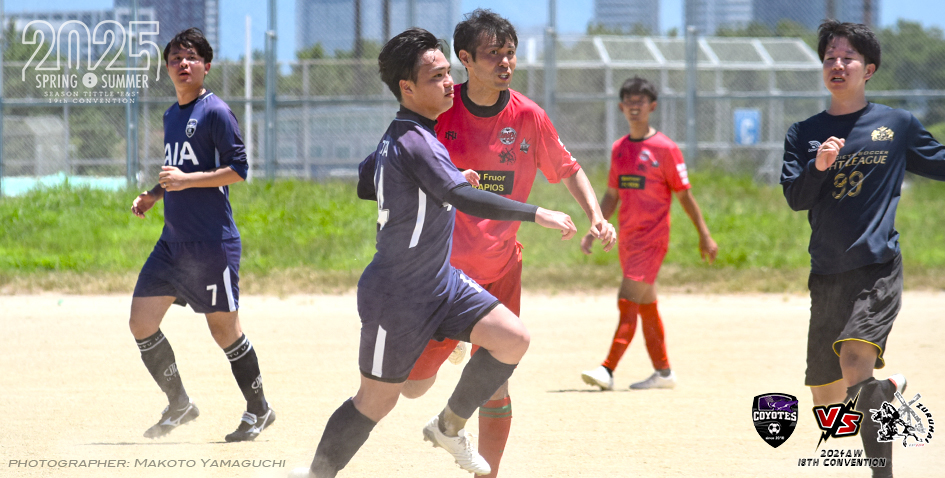 開始から、長身メンバーが多いズルマイはロングボールを多用してチャンスを演出する。相対するコヨーテは細かなパスワークを通じてチャンスを伺うも、互いに決定機を作れず無得点のまま前半終了。