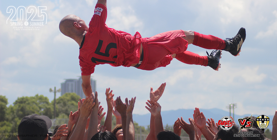 試合終了後はみんなで花道を作り、最後は胴上げ。unityメンバーがこの一連のセレモニーを企画。対戦相手のブラーヴォや審判のアバンザールも一緒になって最高の雰囲氣を作りあげた。