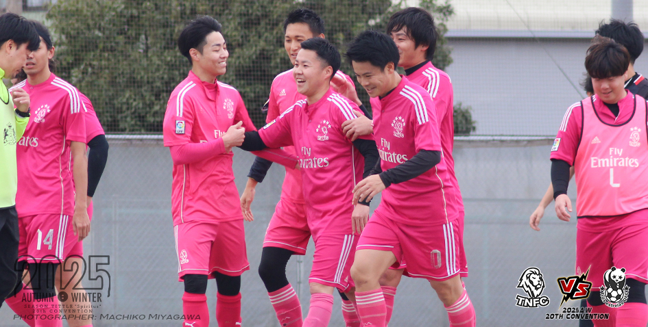 これで完全に流れを掴んだTNFC。18分には汐先選手のクロスを坂本選手[11]が折り返し、右サイドバックから駆け上がった中本選手[20]がフィニッシュ。計3ゴールを奪ってダービーを制し、今シーズン初めて首位の座を掴んだ!